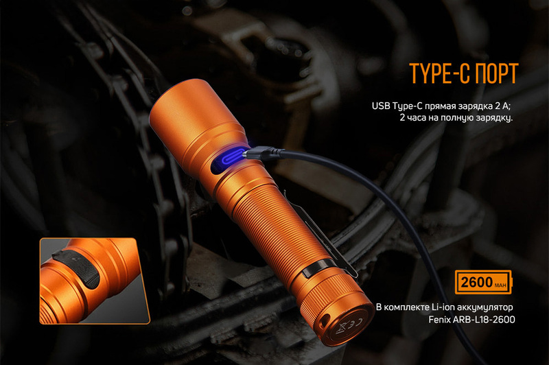 Фонарь модели Fenix C6V3.0 это небольшой ручной прибор, даёт максимальный световой поток до 1500 люменов. При этом наибольшая дистанция освещения достигает 300 метров. Функционирует на светодиоде Luminus SST40, срок службы которого составляет 50 тысяч часов. Питается фонарь за счёт литий-ионного аккумулятора 18650 ёмкостью 2600 мА*ч. Заряжается посредством USB Type-C, зарядный ток – 2 ампера. Для того, чтобы полностью зарядить модель, вам понадобится два часа времени.