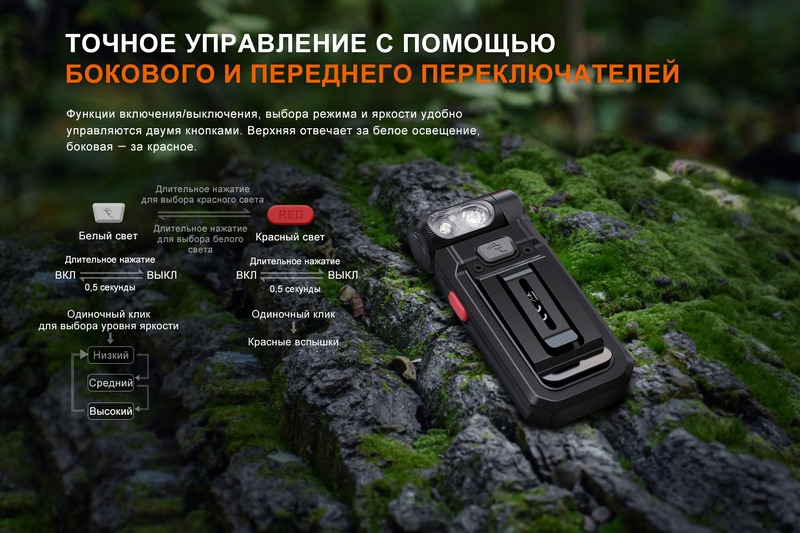Fenix CL22R — это компактный и в то же время многофункциональный кемпинговый фонарь. Главная особенность модели — совмещение нескольких форматов освещения: в качестве ручного фонаря, освещение пространства на 360°, красный свет и разноцветная подсветка. Нижний режим освещения идеально подходит для локального подсвечивания больших зон, например, палаток и столов. Красный свет и разноцветная подсветка делает фонарь полезным не только для освещения, но и для создания уютной или романтической атмосферы, что особенно ценят туристы и любители кемпинга.