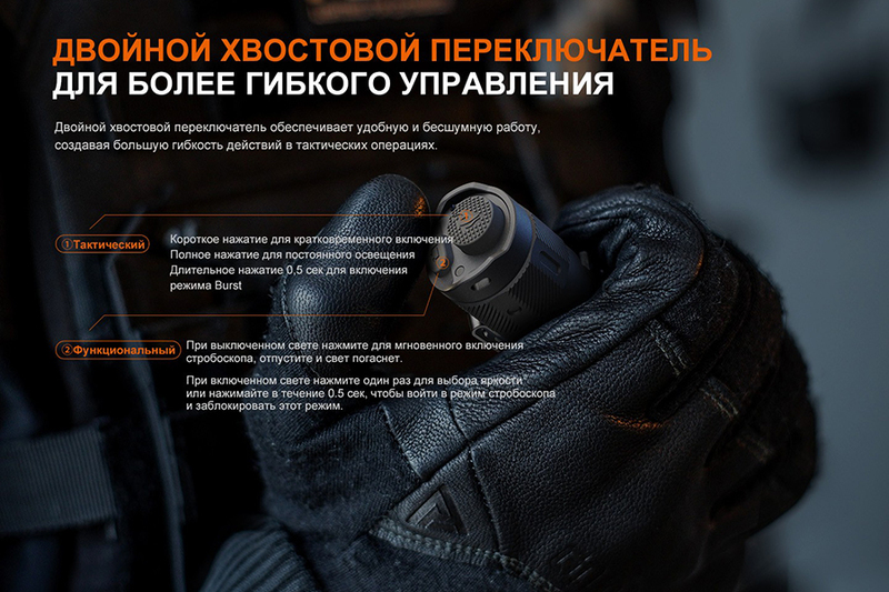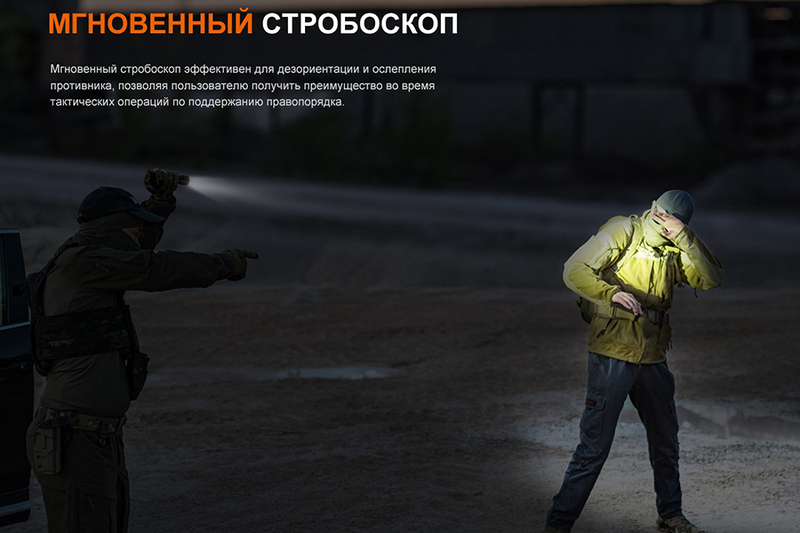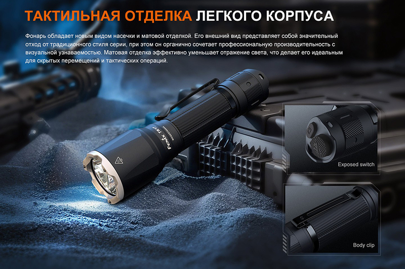 Fenix PD35 V3.0 предназначен для решения тактических задач, и даёт максимальную яркость света в 1700 люменов. При этом дальнобойность луча достигает 357 метров. Диод: Luminus SFT40. Доступны шесть режимов яркости, фонарь хорошо защищён от перегрева корпуса, он полностью водонепроницаемый и довольно прочный. Есть индикация уровня заряда батареи. Габариты составляют 134*25,4*22,8 миллиметра, весит 83,5 грамма (без учёта батареи).