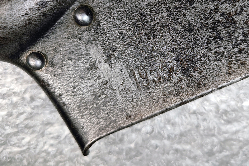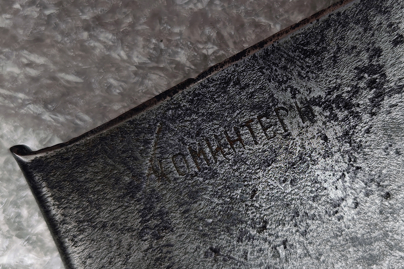Малая пехотная лопатка Коминтерн (Завод им. Коминтерна, г. Днепропетровск). Хорошее состояние лотка, но есть небольшая кривизна. Живая ручка. Нет головы на одной из клепок. 1941 год.