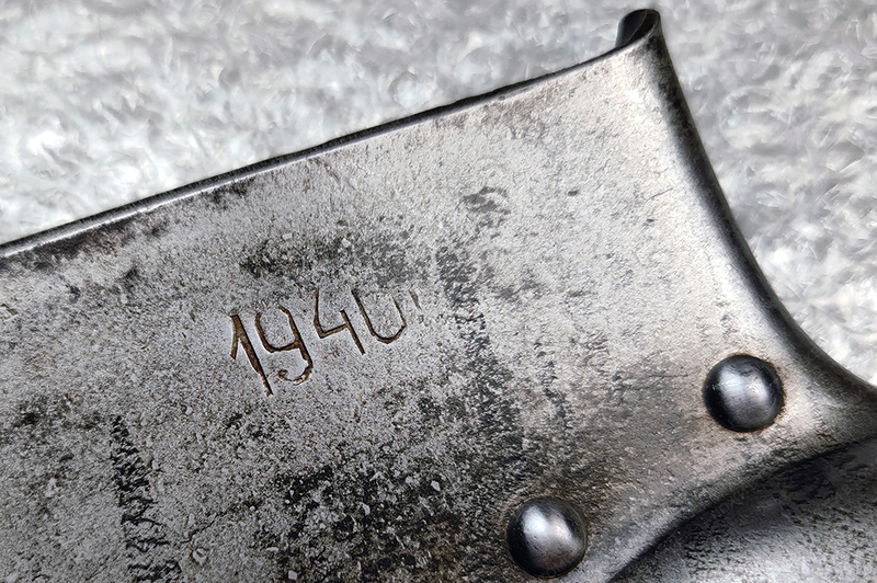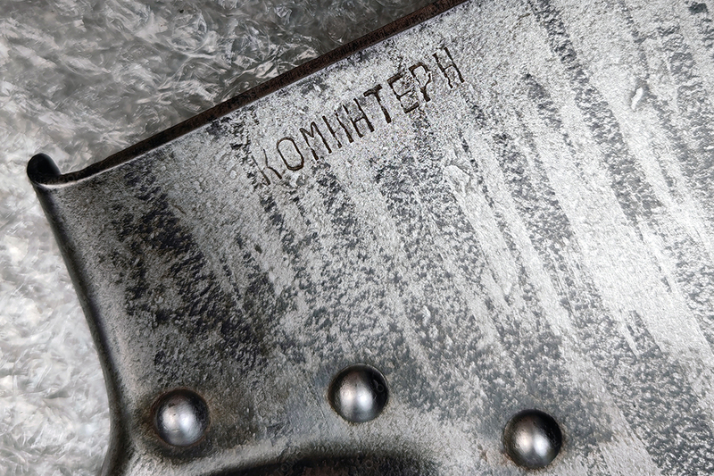 Малая пехотная лопатка Коминтерн (Завод им. Коминтерна, г. Днепропетровск). Хорошее состояние лотка, но нет головы на одной из клепок. Живая ручка. 1940 год.