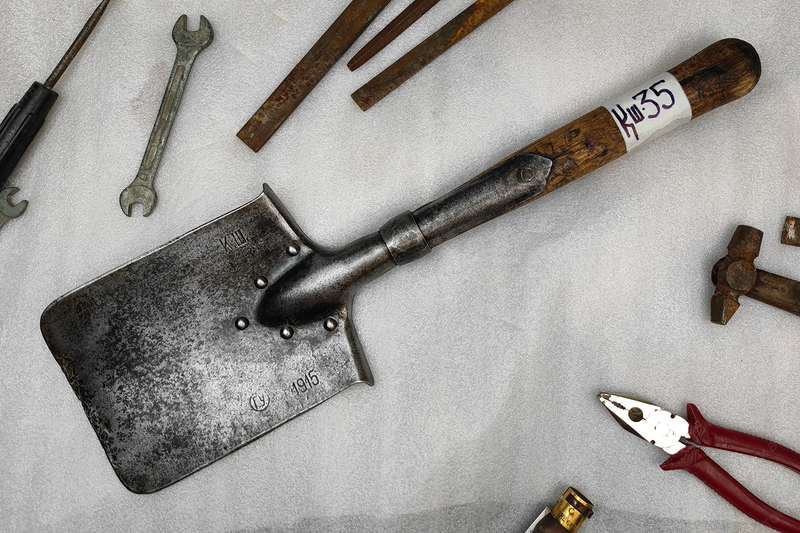 Малая пехотная лопатка КШ (лопатный и вилопрокатный завод Карл Шпигель) 1915 года. На ручке был дефект, залил УФ смолой.
