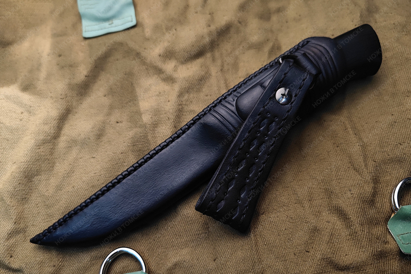 Ножны из кожи растительного дубления толщиной 2,9 мм, стандартное тиснение, окрашены и обработаны, подвес свободный.