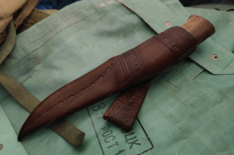 Ножны выполнены из кожи РД толщиной 3,2 мм, стандартное тиснения, покрашены, обработаны. Подвес свободный.