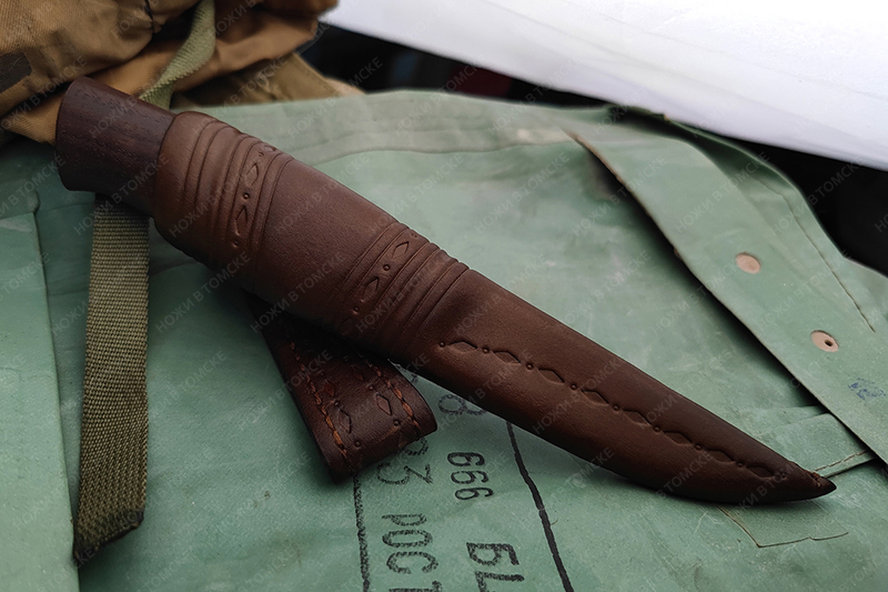 Ножны выполнены из кожи РД толщиной 3,2 мм, стандартное тиснения, покрашены, обработаны. Подвес свободный.- Наличие: есть