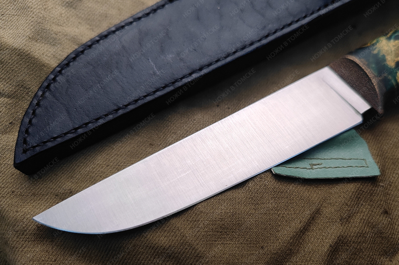 Длина клинка 167 мм, толщина клинка у больстера 2,9 мм., к острию на клин, ширина клинка у больстера 40 мм., спуски от обуха слабой линзой до 0,1 мм., финиш клинка поперечный сатин, клинок заточен до бритвенной остроты на общий угол 38 градусов,.